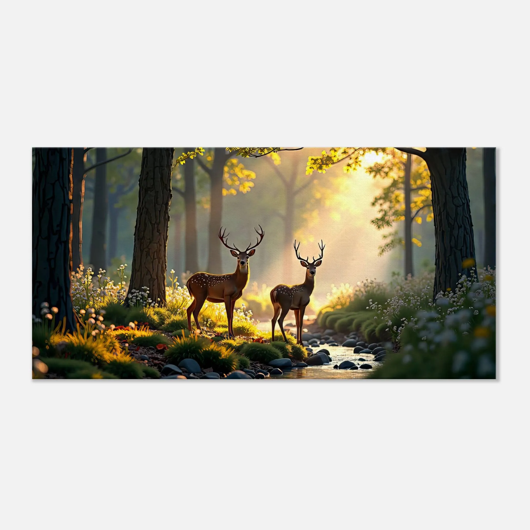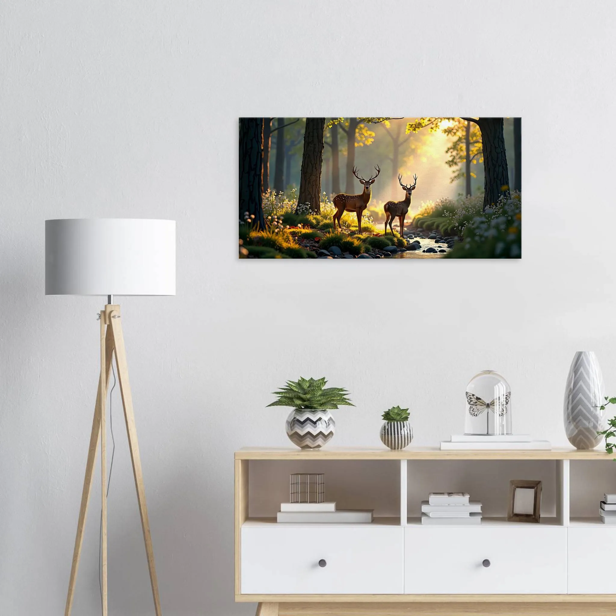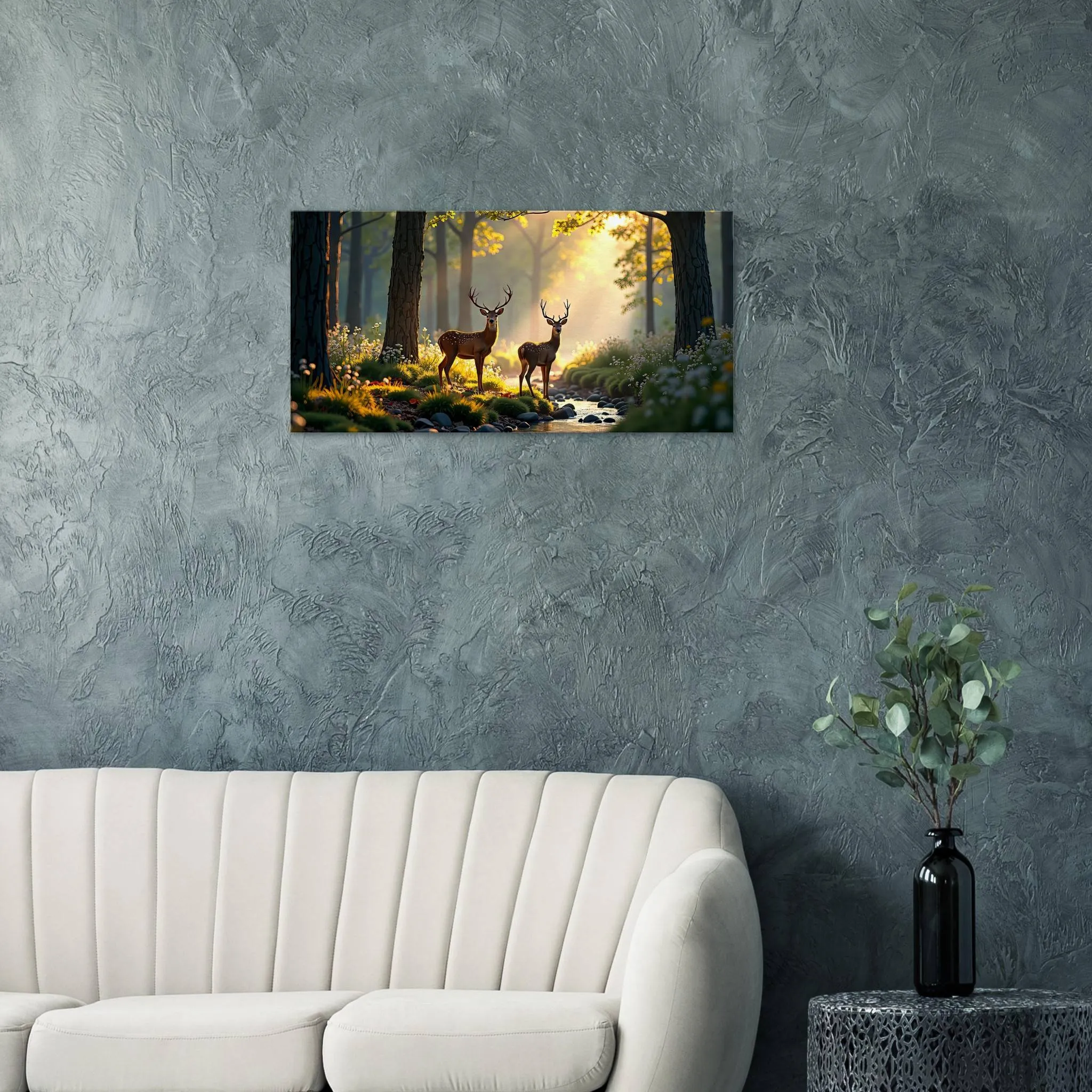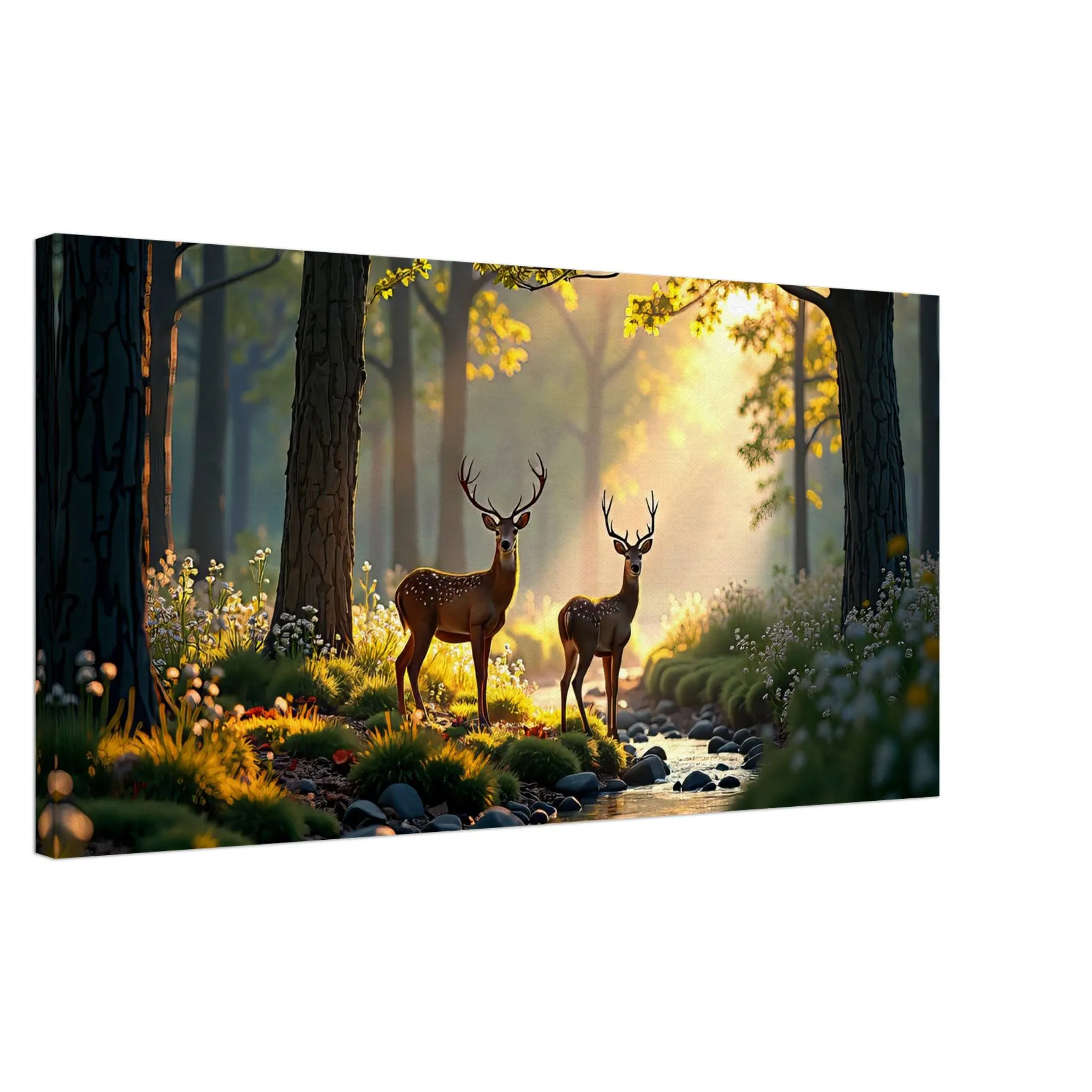 Enchanted Forest Awakening Canvas Art – Serene Wildlife Print for Tranquil Home Décor