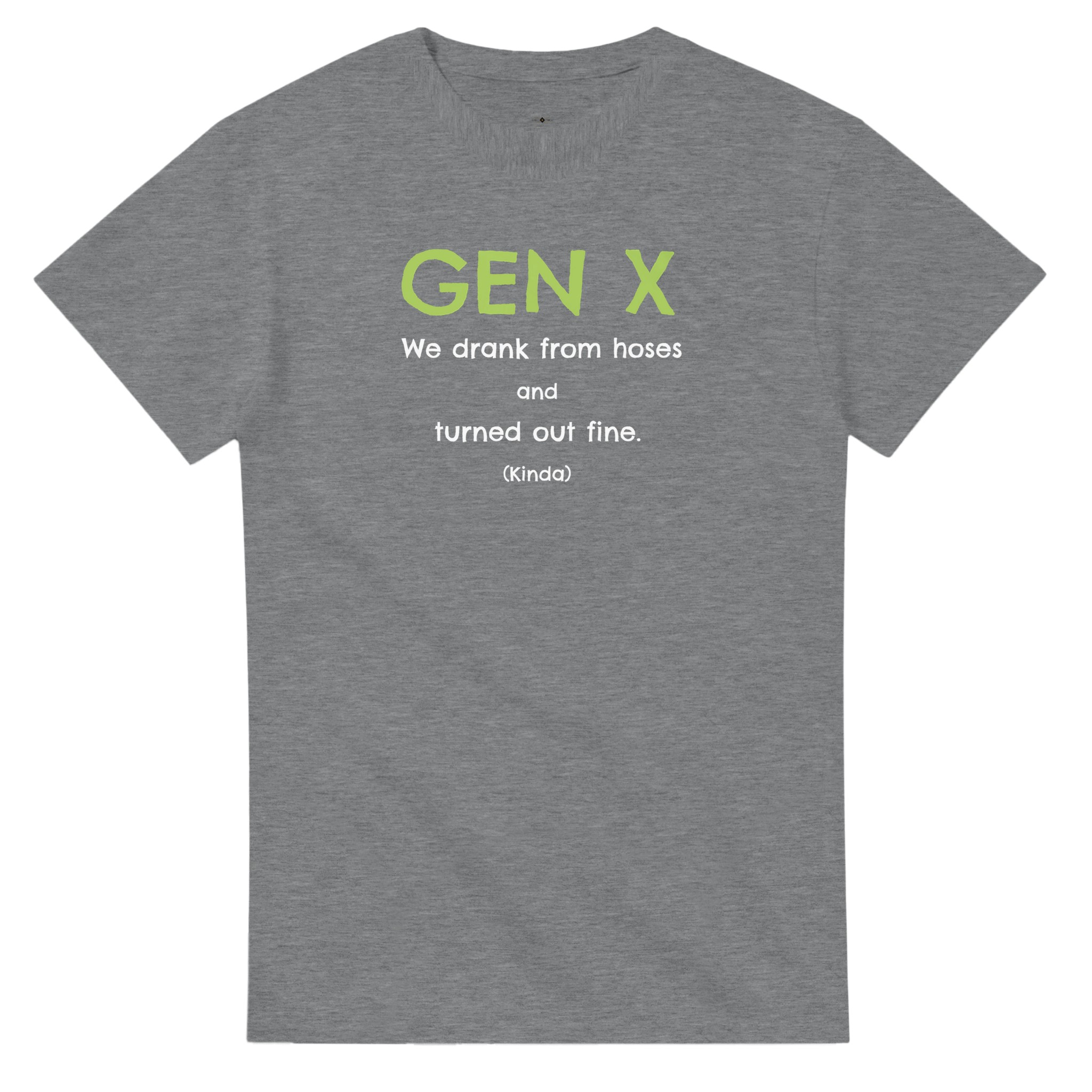 No bottled water. No supervision. No problem. The Gen X “We Drank From Hoses” Tee is a proud tribute to a generation raised on independence, curiosity, and hose water straight from the backyard. Before hydration came in stainless steel bottles with apps, we quenched our thirst with whatever was outside—and we turned out just fine.
