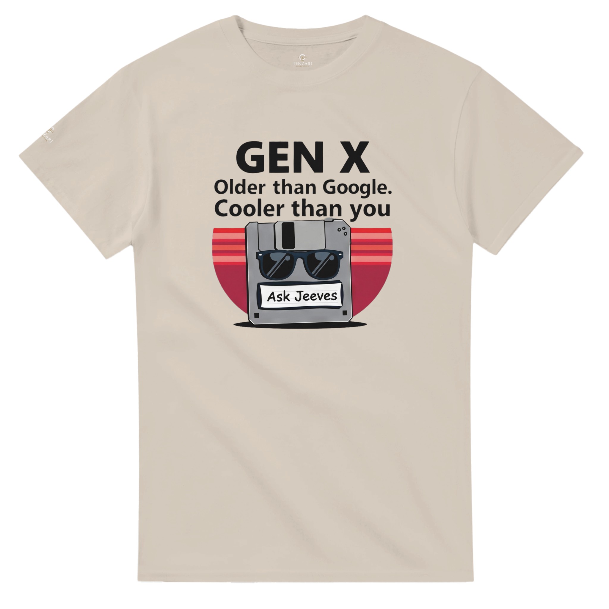 Before the cloud, before the algorithm, before you could “just Google it”—there was us. The generation who saved files on floppy disks, made mixtapes for road trips, and grew up offline (and perfectly fine). With its retro-cool floppy disk in shades, the “Older Than Google, Cooler Than You” T-shirt isn’t just a nod to nostalgia—it’s a full-on flex.