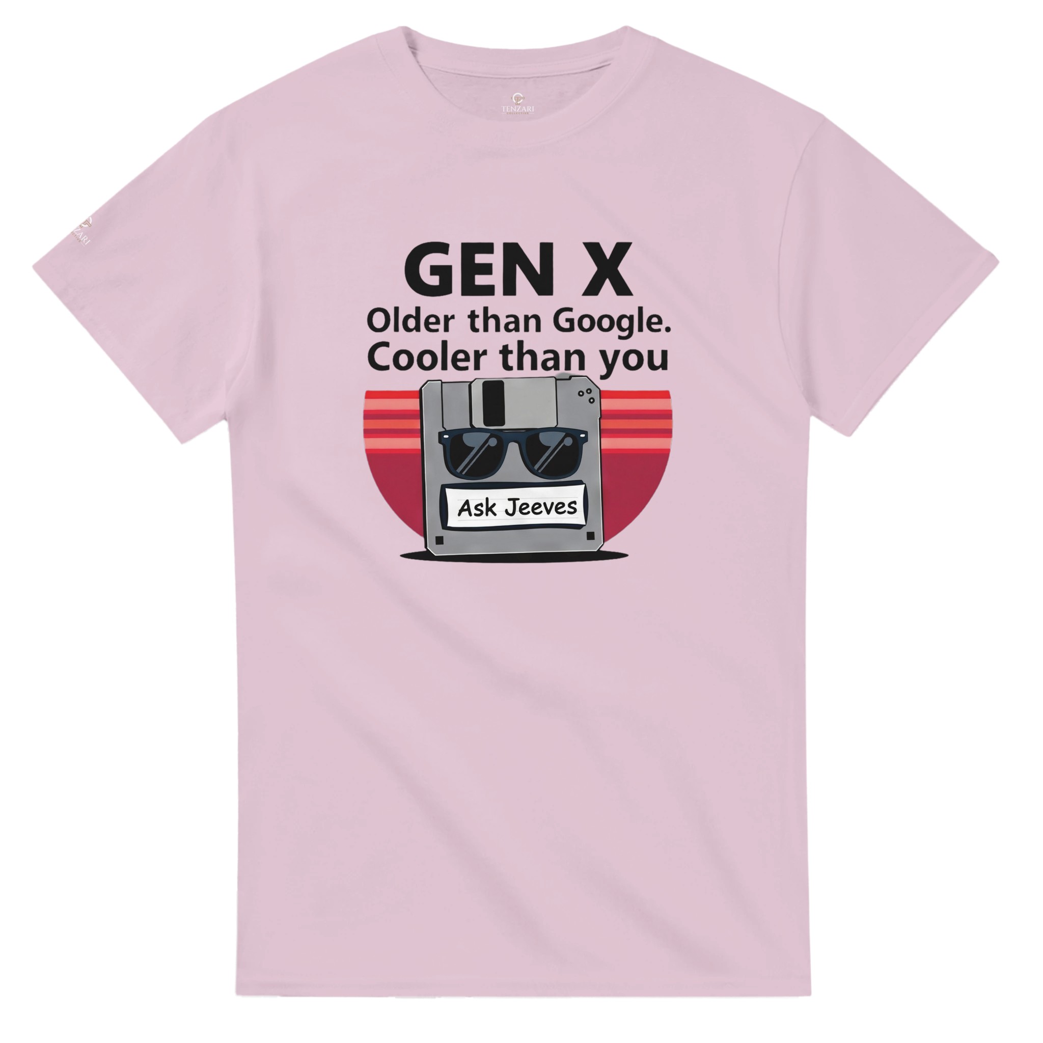 With a bold graphic of a classic floppy wearing shades, this design blends retro humor with unmistakable Gen X confidence.