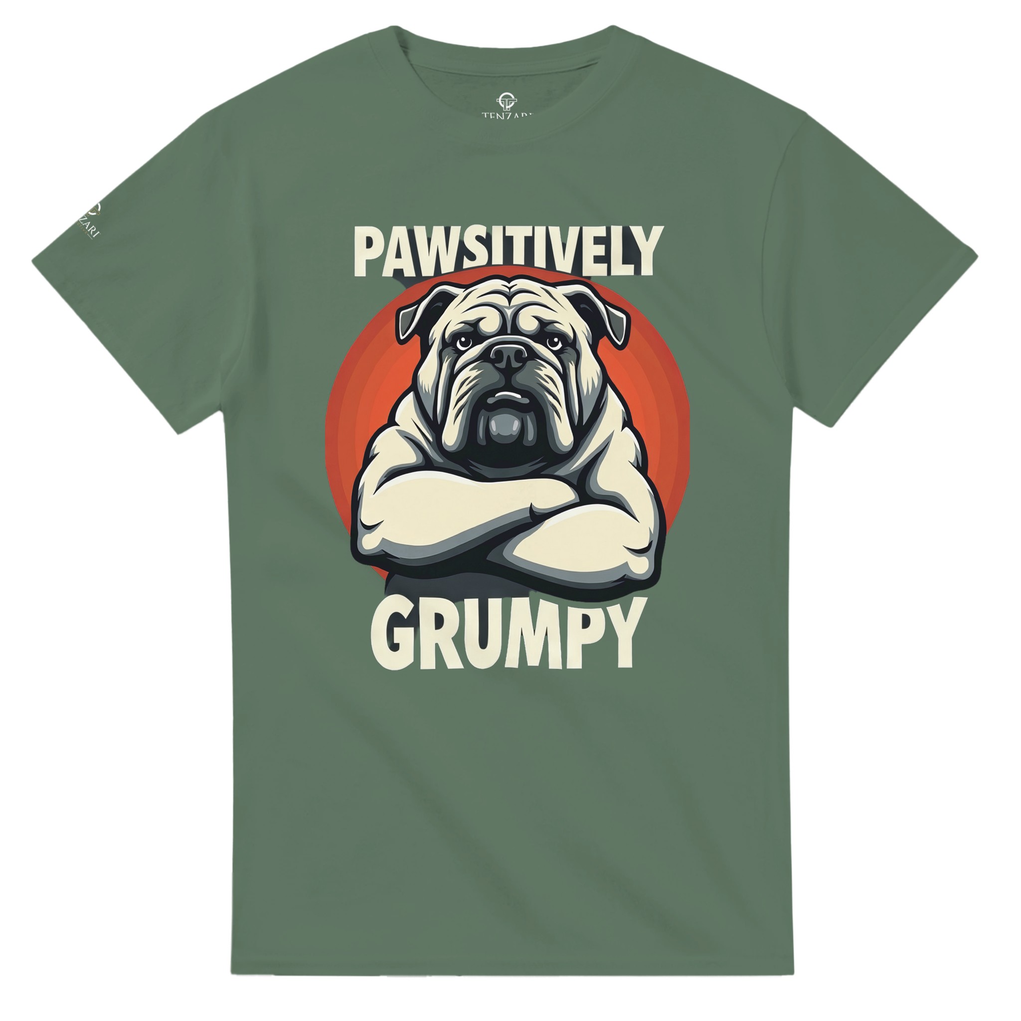 Pawsitively Grumpy Bulldog T-Shirt – Funny Dog Lover Tee in Premium Cotton Blend | Exclusive from The Tenzari Collective