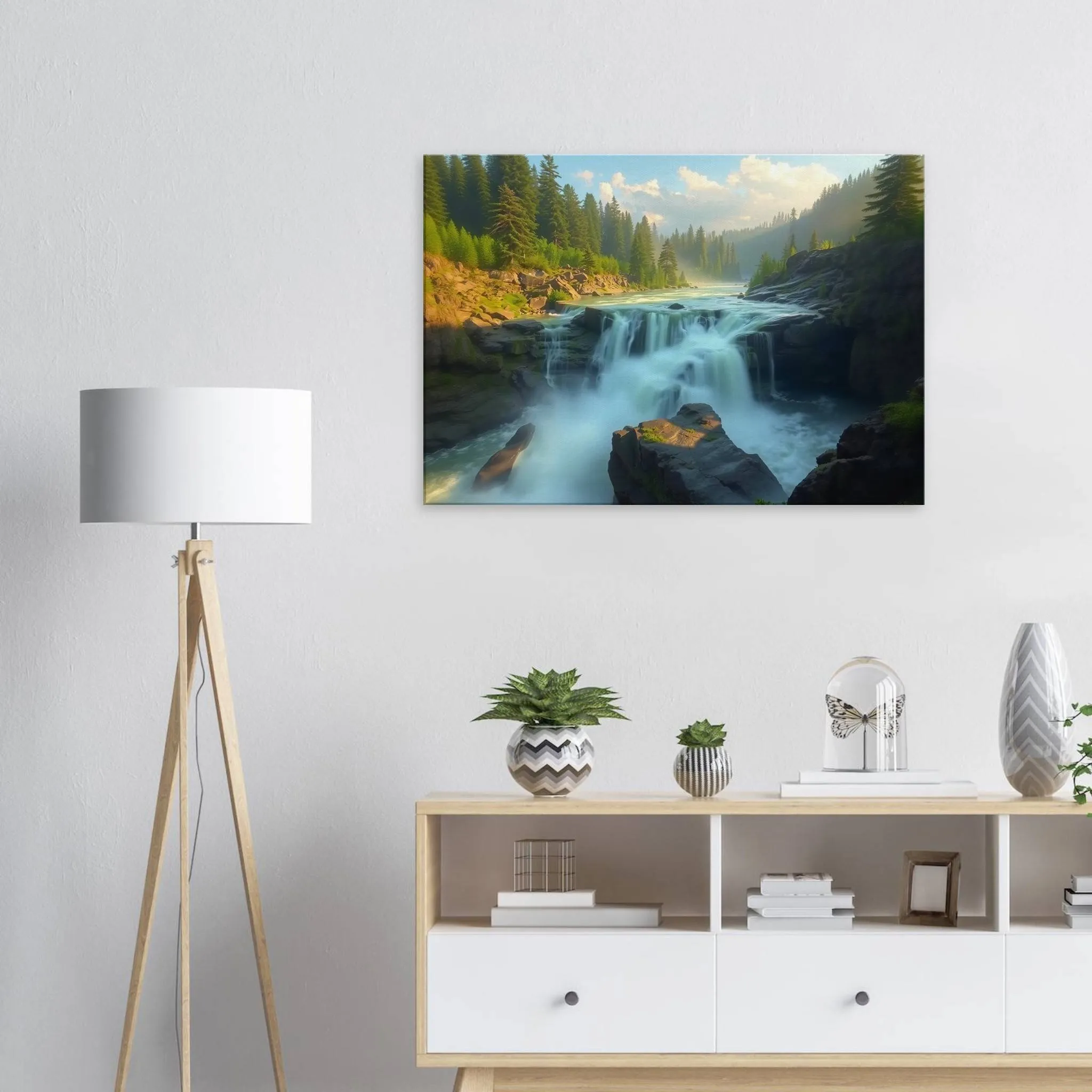 Let the soothing flow of nature echo through your space with Whispers of the Cascade, a breathtaking canvas print that invites peace, movement, and timeless elegance into your home. Inspired by the gentle grace of cascading water and the tranquil strength of natural landscapes, this piece transforms your walls into a window to serenity.